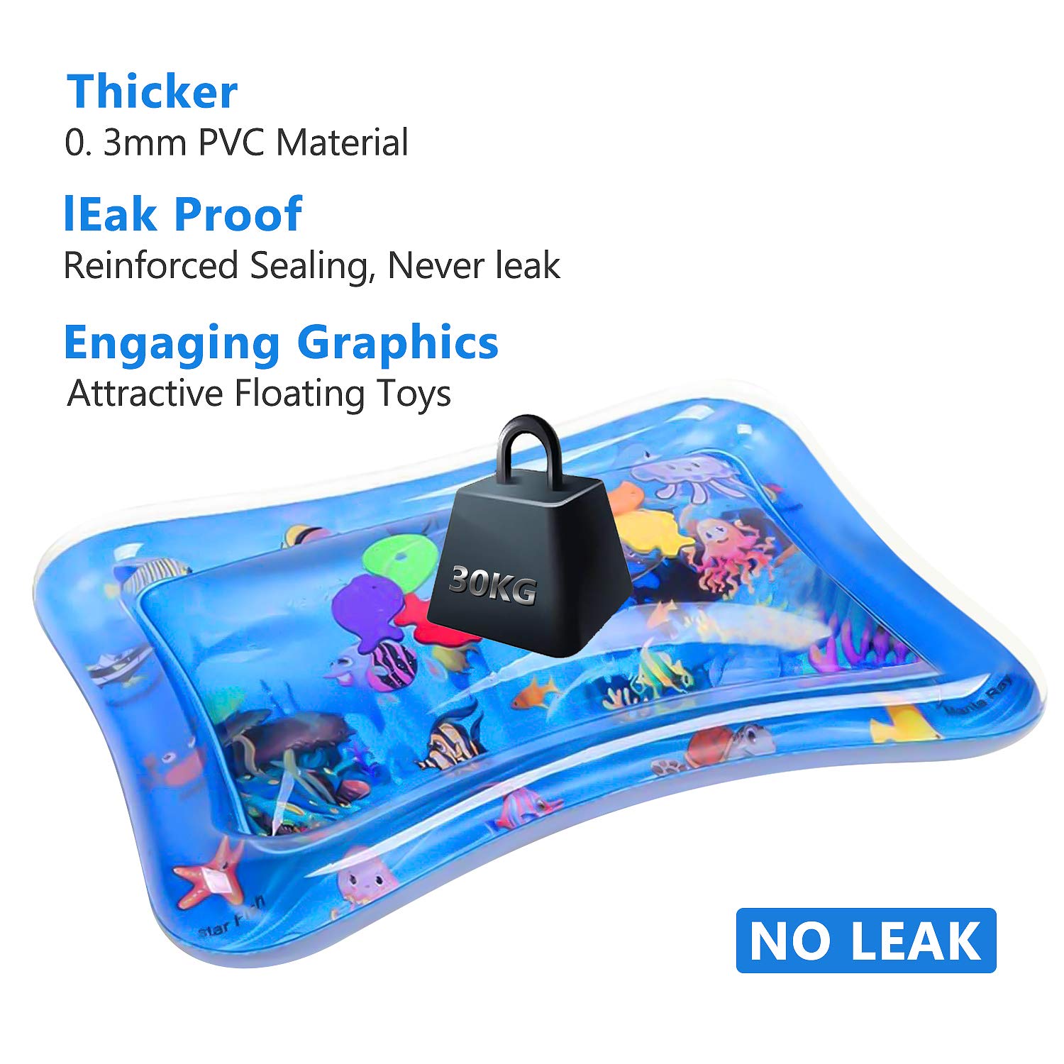 Baby Water Pad Water Play Mat for Infants Toddlers Early Development Activities Inflatable Tummy Time Water Mat for 3-48 Months Boy Girl Baby Toys Play mat for Baby's Stimulation Growth,26”x22”