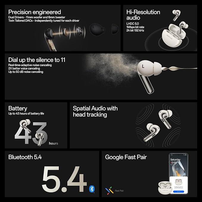 OnePlus Buds Pro 3 Bluetooth TWS in-Ear Buds – Dual Drivers, Dual DACs, Dynaudio EQs, AI-Powered Translator, Up to 50dB Adaptive Noise Cancellation, Up to 43Hrs Battery. ⭐⭐⭐⭐⭐ (4.9/5)